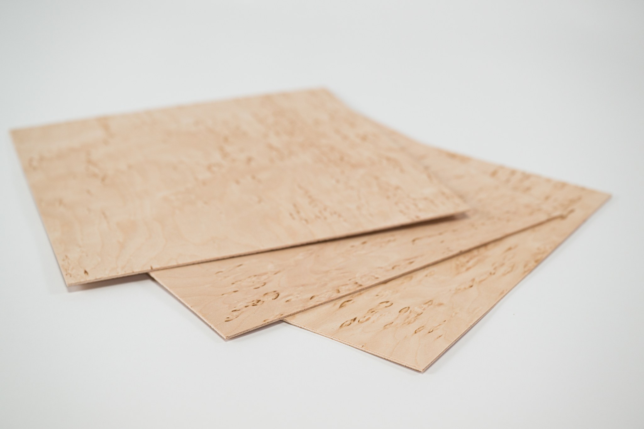 Visakoivu pintainen ohutviiluvaneri on tyylikäs valinta moniin eri käyttökohteisiin kuten koruihin, askarteluihin tai käsitöihin. Pinnassa on luonnollisia, aaltoilevia ja silmukkamaisia kuvioita jotka syntyvät koivun kasvaessa.